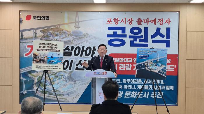 포항시장 출마예정자인 공원식 전 경북도 정무부지사는 2025년 12월 23일 오전 10시 포항시청 브리핑룸에서 기자회견을 개최하고, 영일만대교 건설에 따른 해양문화 공간을 복합적으로 구상하고 있다고 밝혔다.